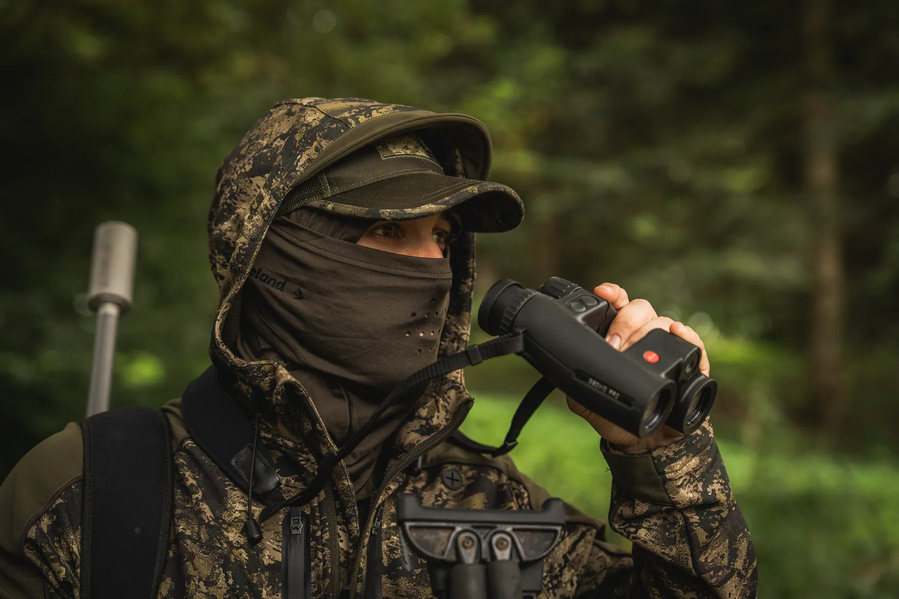 Technisch ausgereifter Face Cover aus leichtem 4-Wege-Stretch - erhältlich in InVis Camo oder Pine Green. Laser-Cut-Ventilation für optimale Luftzirkulation, kombiniert mit atmungsaktivem, geräuscharmem Material. Für maximalen Komfort und unauffällige Bewegungen während langer Jagden. Mehr lesen