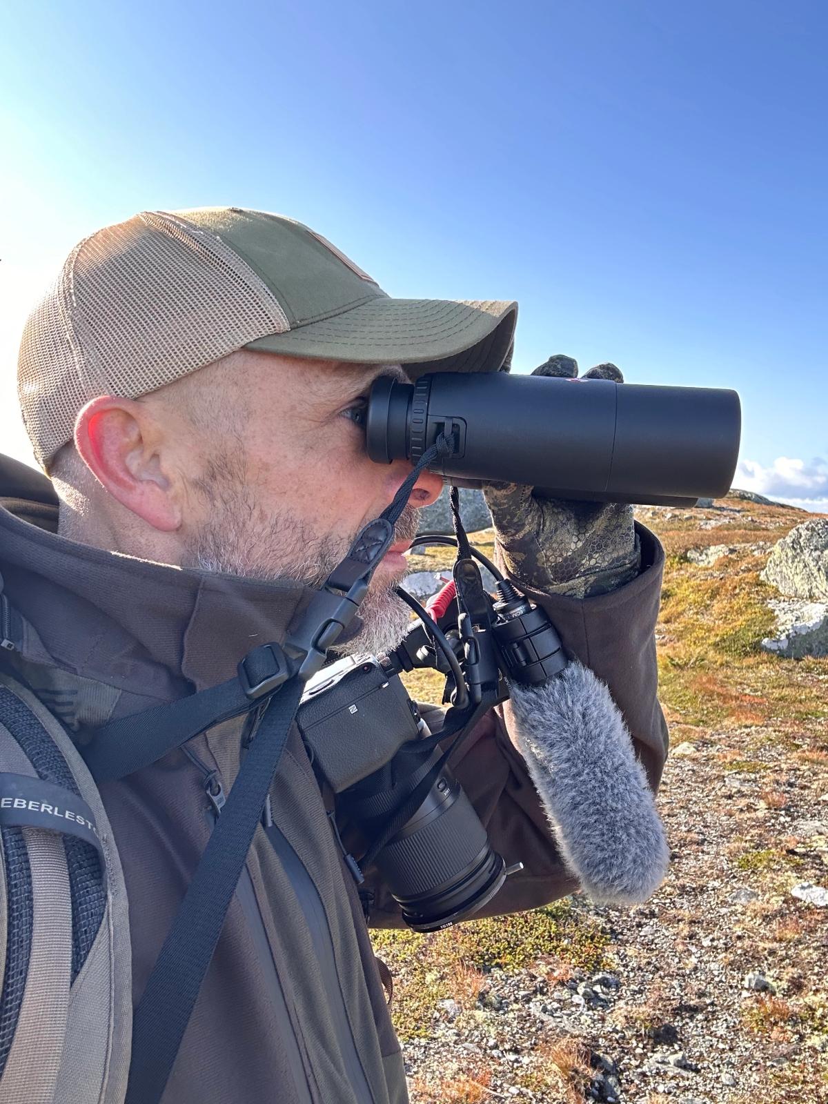 Reindeer are on the move around the clock, not only at dawn and dusk. So the key feature is not so much light sensitivity as anti-fogging. 10x magnification is a good choice since it allows you to cover a larger area. I also have a spotting scope with 60x magnification – but I never take it, as its power-weight ratio doesn’t hit the mark. It’s just too heavy. However, I can attach my binoculars to my camera tripod to prevent arm ache. A special adapter is available to attach your mobile phone to the binoculars and film from afar and then zoom in to determine the sex and size of the reindeer, even from several kilometres away.