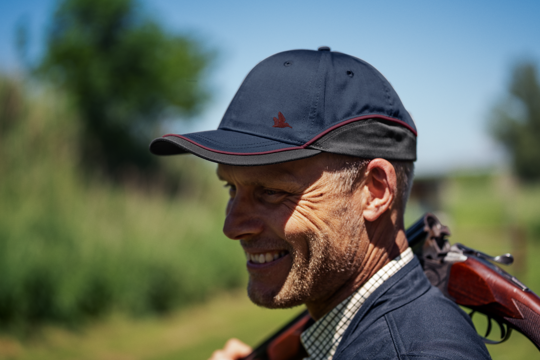 Bredskärmad keps som matchar Skeet-västen. Med ventilationshål och kardborrejustering i nacken.